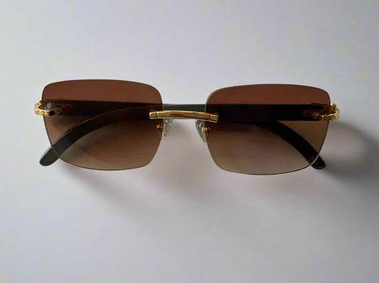 Luxury Honey Black Buffalo Horn Rimless Sunglasses