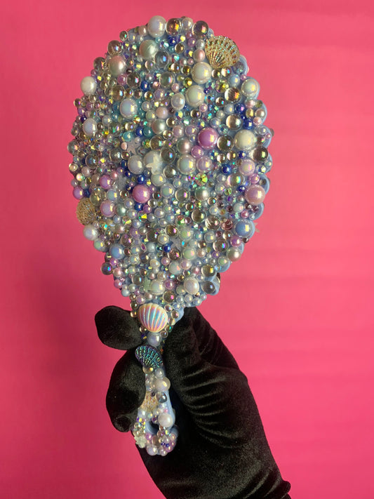 Enchanting Mermaid Rhinestone Handheld Mirror - White & Blue