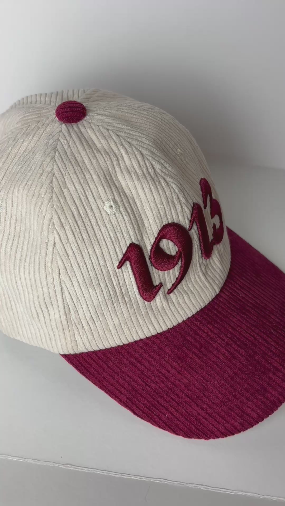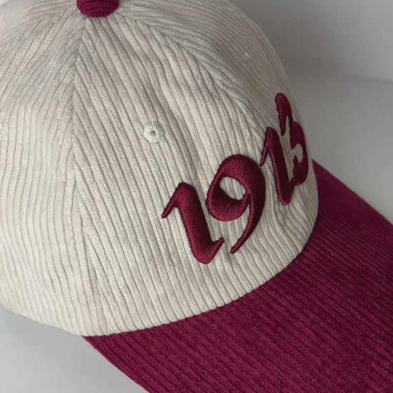 Celebrate legacy and style with this 1913 Delta Sigma Theta hat. Crafted in soft ribbed corduroy, this two-tone cap features a cream crown, burgundy bill, and bold, 3D embroidered 1913 honoring the founding year of Delta Sigma Theta Sorority, Inc. Designed with an adjustable back strap for a comfortable, customizable fit—perfect for everyday wear, events, or gifting to a proud Soror.